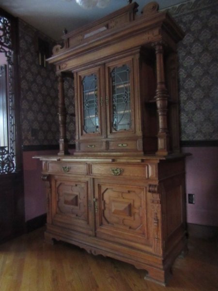 We can design a matching front and back bar from any tall antique sideboard.  Antique sideboards range from 4 ft. to 8 ft. long.  Using 2 matching antique sideboards we can create a back and front bar to be 10 ft to 18 ft long .