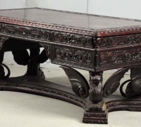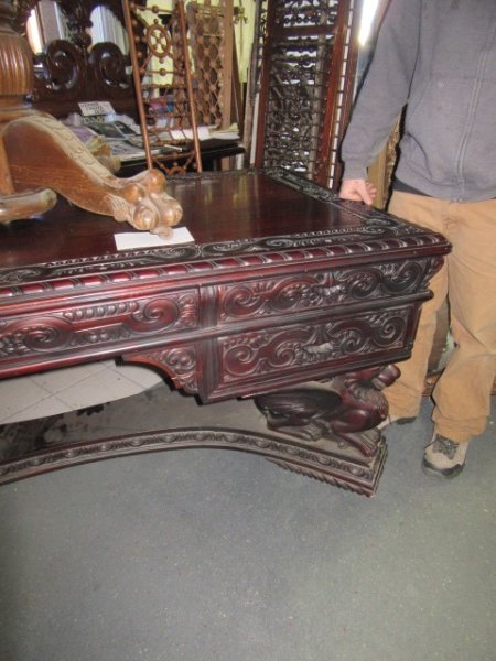 269-RARE CARVED GRIFFIN ANTIQUE PARTNERS DESK - CIRCA 1920 - USA MADE - DRAWERS ON BOTH SIDES - 78\'\' L X 42\'\' W - MAHOGANY