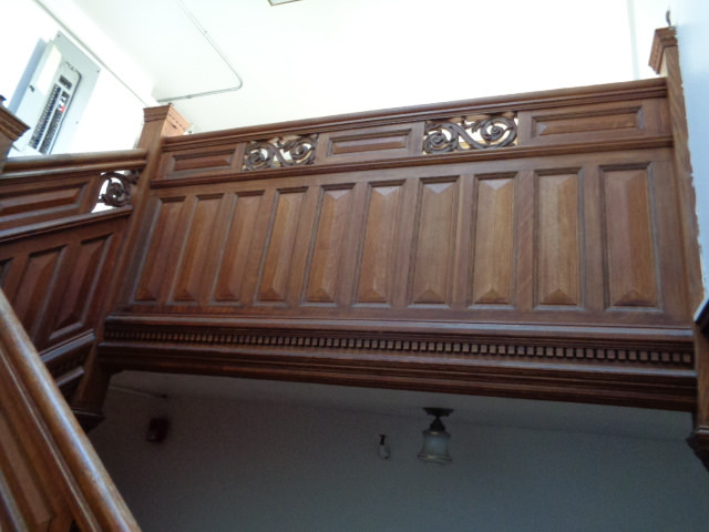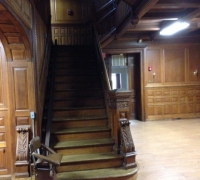 56 -The FINEST antique carved staircase in the USA! - With all the matching wall paneling and paneled large room and doors and matching huge 11 ft 6''h x 85'' w