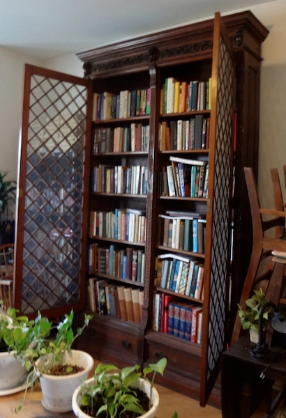 88 - Massive walnut bookcase - bar - 115'' l x 115'' h x 36'' d base - 24'' d top - circa 1870 - mint cond.