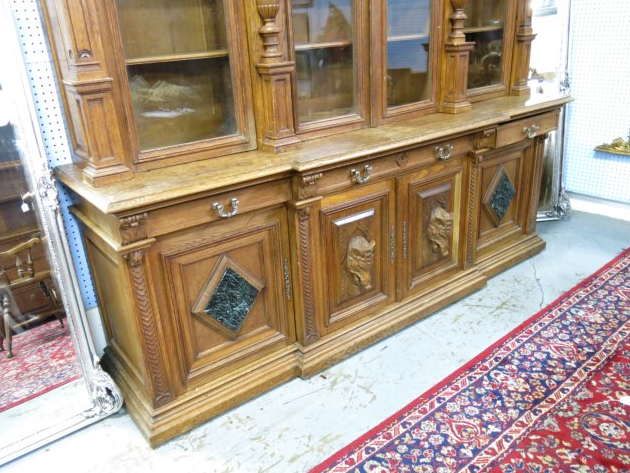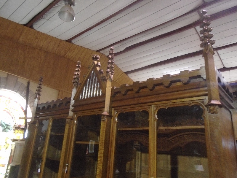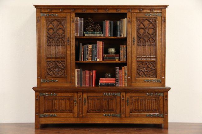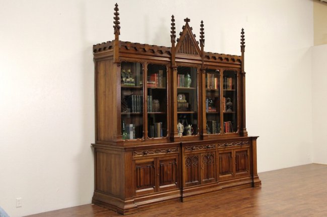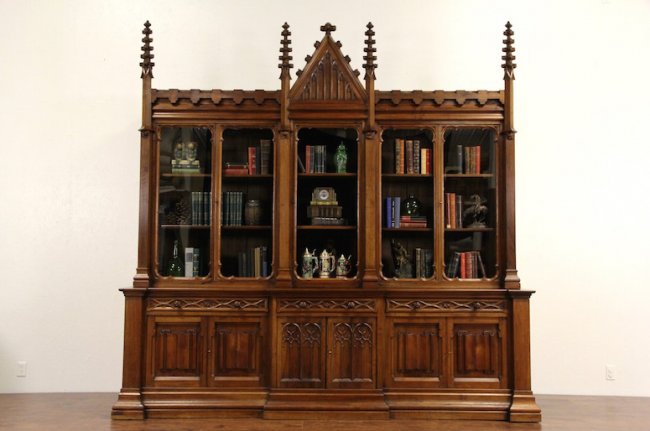 91 - Great Gothic carved bookcase - back bar - 87'' long x 72'' h x 25'' d - circa 1880