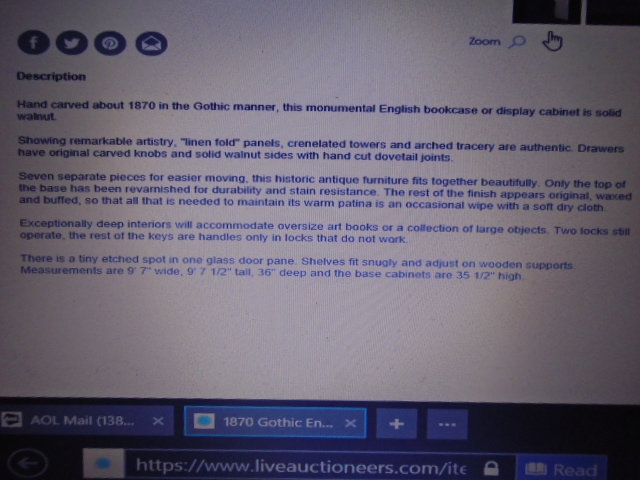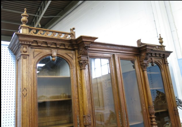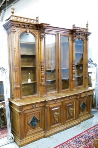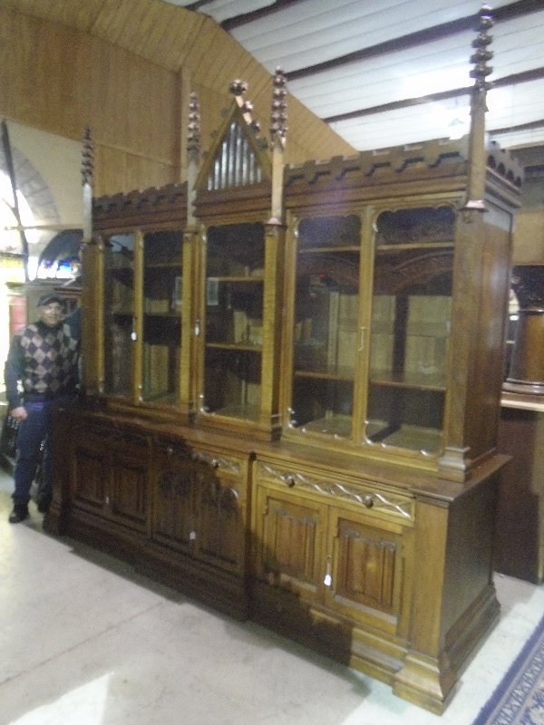 90- Great huge walnut bookcase - back bar - mint condition - circa 1870 - 115'' w x 115'' h x36'' d