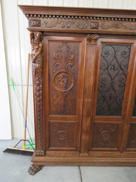 117-GREAT X - LG CARVED BOOKCASE --105'' H X 10' 4 '' W